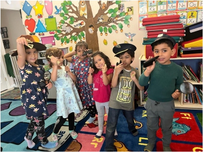 We stand by the principle that children learn best through play. Our games, circle-time, role-play, dress-up, scavenger hunts, baking, competitions, storytelling, art, public speaking opportunities, and what would you do scenarios help children develop empathy, emergency readiness, critical thinking skills, teamwork, spirit, strong social and academic skills, and confidence.